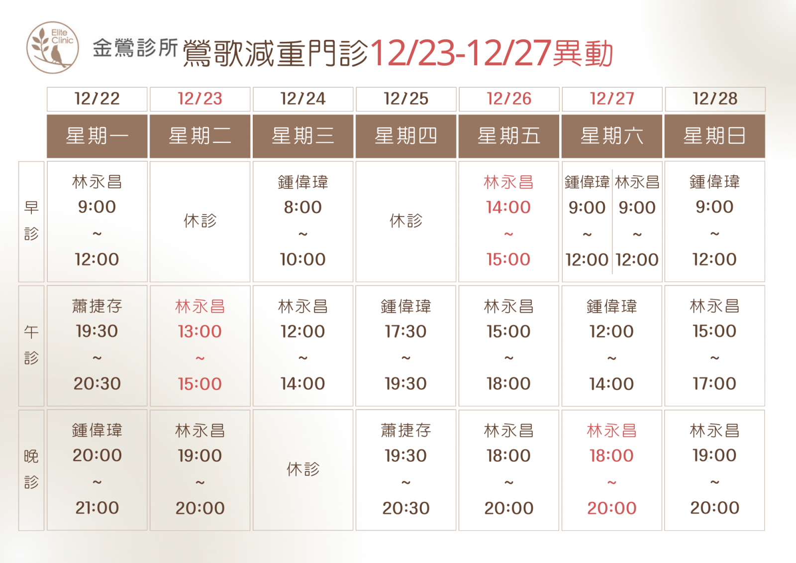 門診表