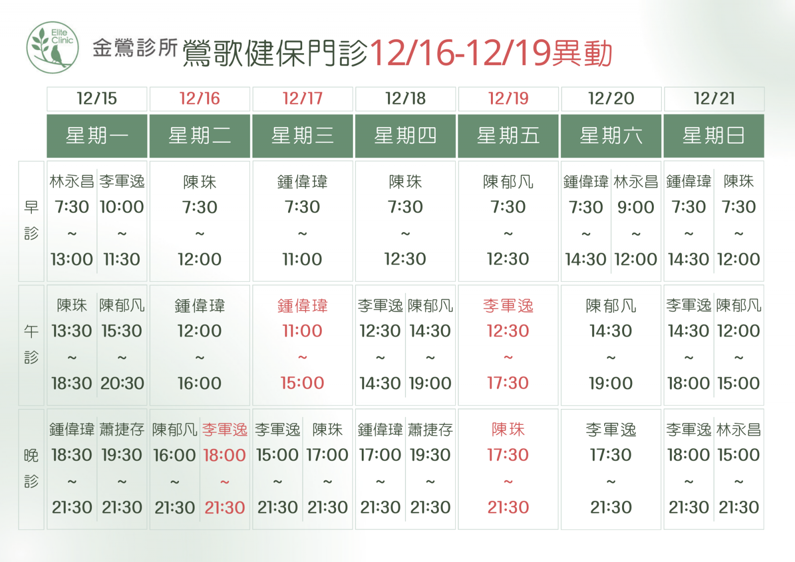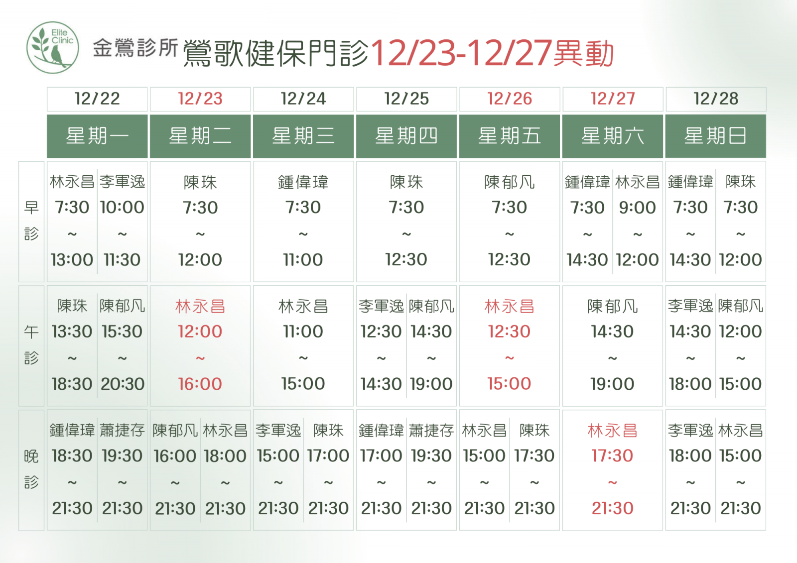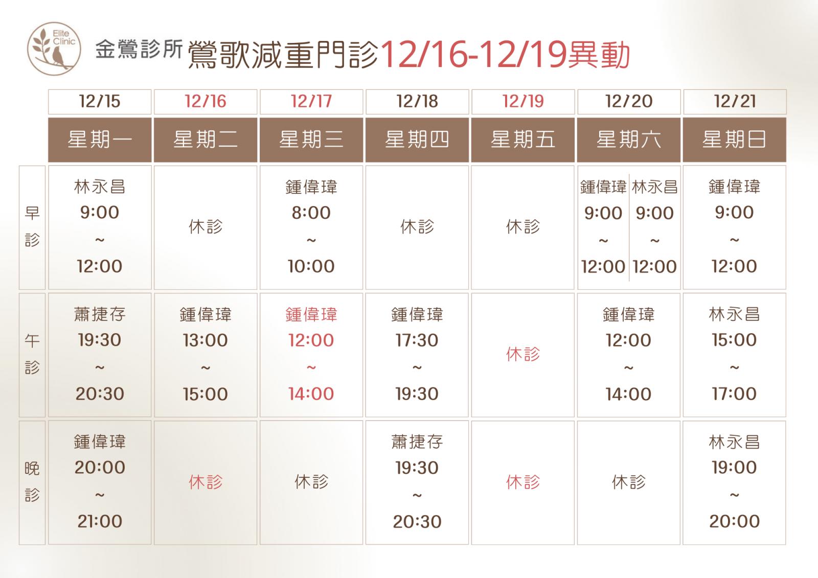 門診表