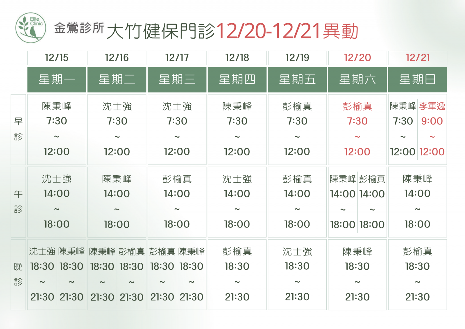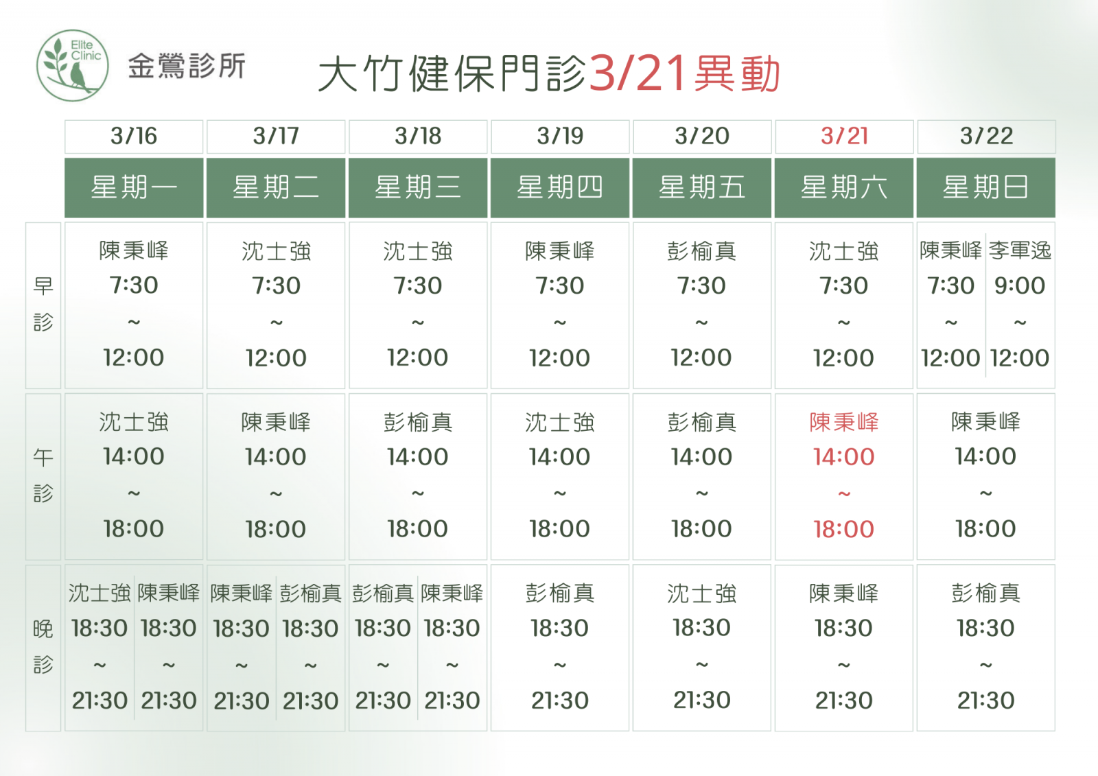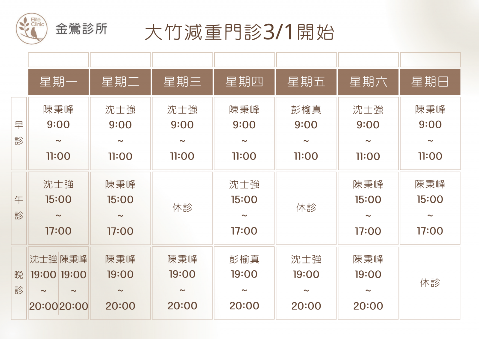 門診表